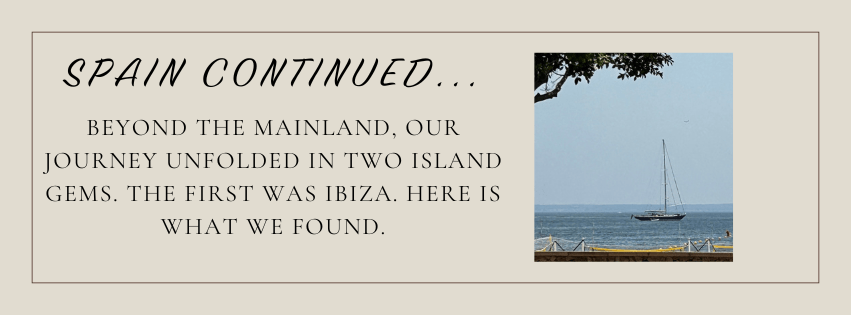 We decided to travel off the beaten path while in Ibiza. We found our way to Las Dalias Hippy Market & Café, tucked into the hills of Sant Carles. The market is a bohemian’s dream—nearly 300 stalls overflowing with handmade bags, one-of-a-kind dresses, vinyl records, jewelry, and more. It’s a true treasure for the modern-day hippie, and yes—there’s something for everyone. Our boys left with t-shirts, hats, sunglasses, and jewelry, while I found two dresses I couldn’t resist. Many booths even had curtained spaces. This allowed you to try before you buy. It was a thoughtful touch that made the experience feel personal and relaxed. I would’ve bought more. However, we were only on day three of our twelve-day vacation. I needed to save room in my suitcase for other unique finds still to come.