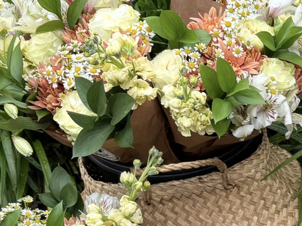 Last weekend, my journey began at a quaint farmers’ market, right in downtown Alpharetta, GA, where I stumbled upon Bee Kind Blooms, a vibrant floral stall nestled between fresh produce and handmade crafts. The air was filled with the sweet fragrance of fresh blooms, while the stall itself was a kaleidoscope of soft colors, romantic yet warm. Layers of delicate petals in ivory and blush intertwined with gentle greenery, creating a timeless, elegant display.