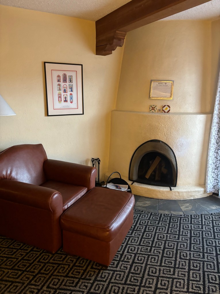 The Inn of the Governors is a warm and inviting retreat in the heart of Santa Fe’s Plaza district. Here you can explore restaurants, museums, and shops all within walking distance. Our room featured a charming adobe fireplace. It filled the space with the comforting aroma of cedar firewood. This enhanced the Southwest ambiance.