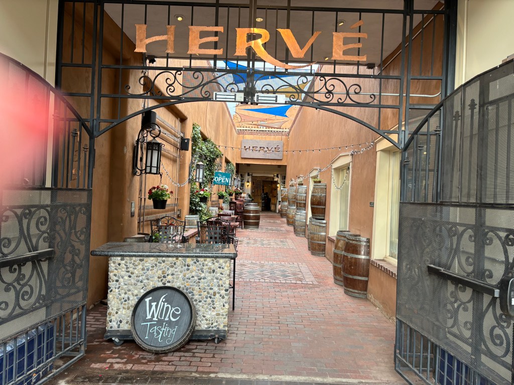 Herve Wine Bar is the perfect place to relax and unwind in Santa Fe. As you walk through the gates, you see wine barrels lining the alleyway. High-top wrought iron tables for two enhance the inviting experience. The space opens up to a lively bar. There are a variety of seating areas. It offers cozy spots for intimate gatherings and larger tables for groups. No matter how you choose to enjoy it, you’ll never feel rushed here.